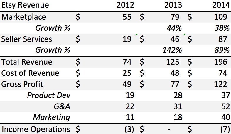 Chicago VC Ezra Galston has a good analysis of the Etsy S1 on Techcrunch today. We are investors in many marketplace businesses (YemekSepeti, Vivense, Grupanya, Idemama, Tapu.com, Videdressing, Auctionata, Carpooling, Smava, etc.), and we watch the industry intently, as there has been more recent value created in marketplaces than any area of consumer internet.